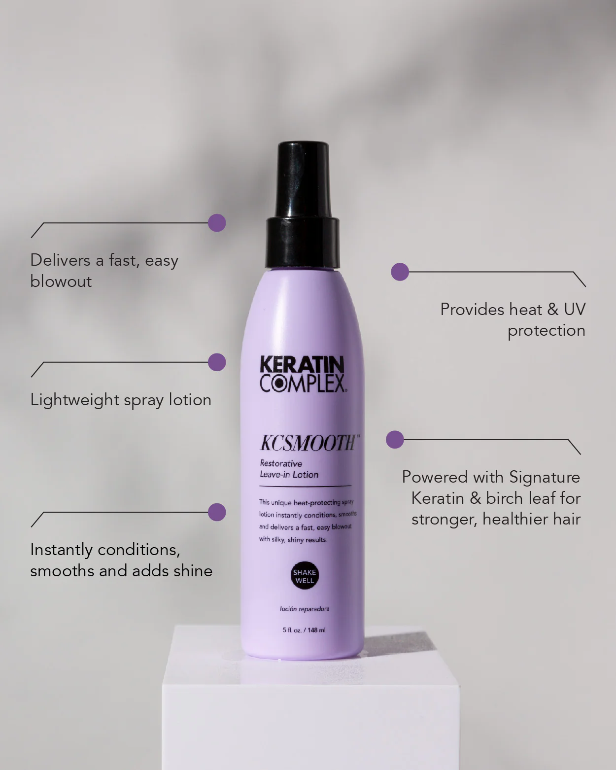 Can also be used alone –this lightweight heat-protecting spray lotion instantly conditions, smooths and delivers a fast, easy blowout with silky, shiny results. All hair types.